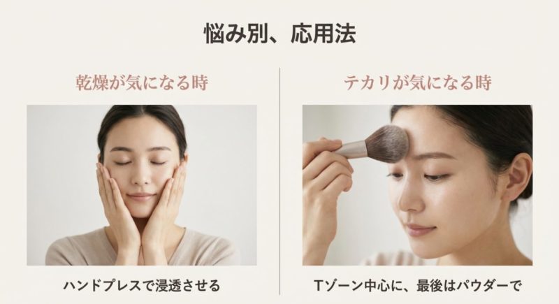 | テカりやすい | 軽め・さっぱり | 部分リセット用に少量 | Tゾーンは基本使いすぎ注意 |